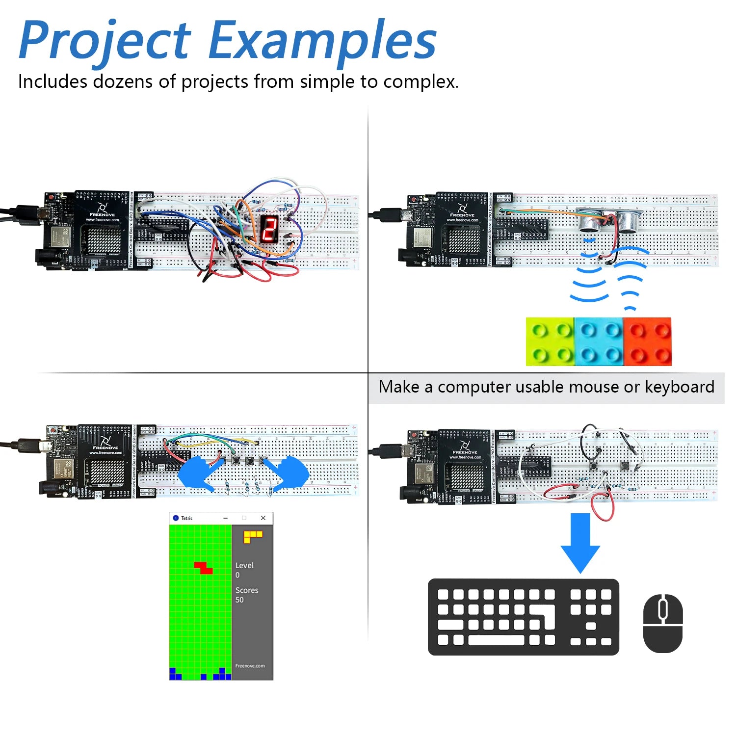 The Freenove Super Starter Kit (V5 WiFi / V5 Mini) is powered by a modern Arm Cortex-M4 microcontroller and includes 172 components, 60 hands-on projects, and a 305-page tutorial to guide you step-by-step.