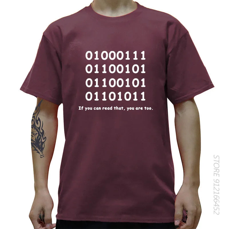 This novelty programming T-shirt features a clever Binary/ASCII print—perfect for developers, engineers, and anyone fluent in 1s and 0s. Made from 100% premium cotton, it’s breathable, soft, and ready for your next coding sprint or coffee-fueled debug session.